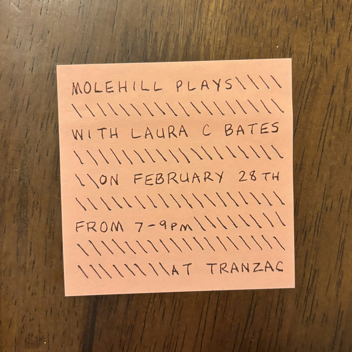 Molehill plays long improvised pieces constructed of short repeated improvised pieces. The usual cast of Jake Oelrichs, drums; Pete Johnston, guitar; and Mike Smith, bass will be juiced considerably this time around with special guest Laura C. Bates on violin