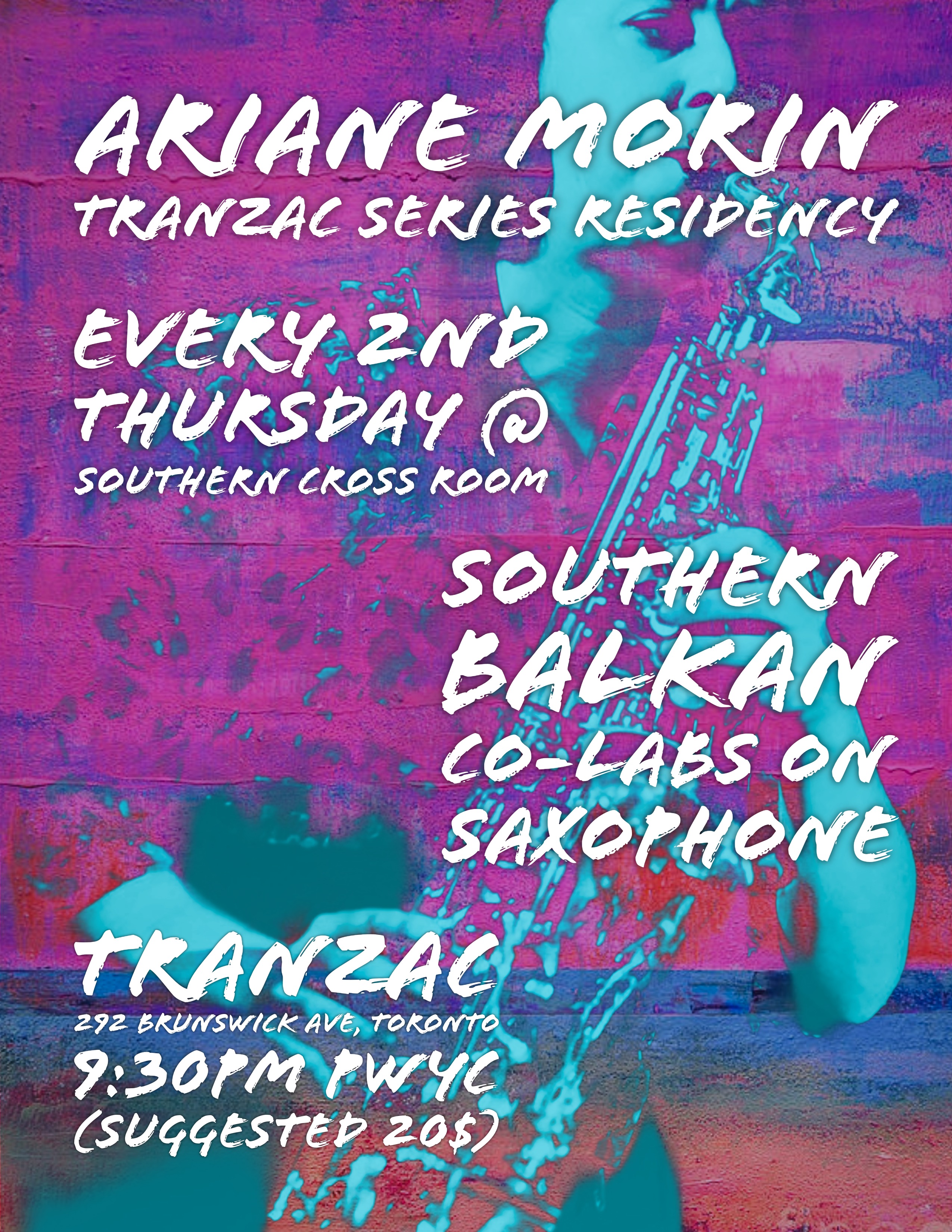 Each 2nd Thursday of the month, Montrealer saxophonist Ariane Morin aims to create a space for new collaborations in Balkan, Greek, and Turkish music with musicians from the local Toronto diaspora scene. Each month features a different formation or focus—whether a dance-inspired Balkan brass night, an intimate café-aman style Greek set, and other possibilities—all showcasing the saxophone’s expressive capacity across varied contexts within Balkan and modal traditions.