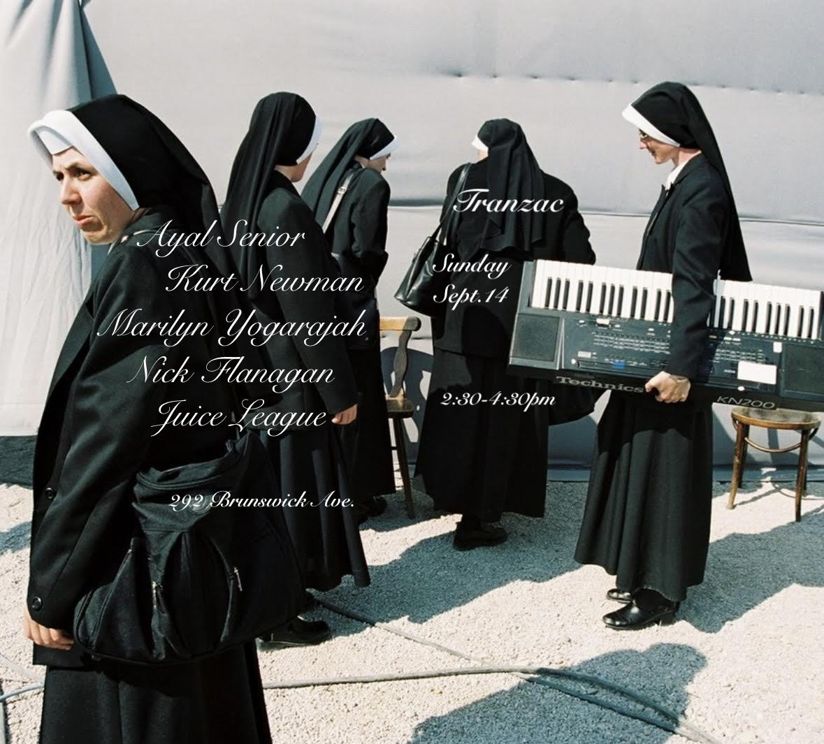 "Ayal Senior & Friends returns after a sweltering psychedelic summer to the fabled Southern Cross Room at the Tranzac, in the heart of T-dot! Returning to the fold is Kurt Newman who has a mind-blowing new release of improvisations w/ THEE HENRY KAISER out on Rat-Drifting available here: https://rat-drifting.bandcamp.com https://ayalsenior.bandcamp.com/album/from-5pm-to-5am It's been a minute, but the ubiquitous Marilyn Yogarajah returns in September to sound bathe with us in a funky soup of healing frequencies & freesound! https://marilynyogarajah.bandcamp.com Nick Flanagan is back from Moscow with new jokes from the front lines! Having completed his community service hours by entertaining Siberian Prisoners and their families as part of his release programs, 'Czar Nicholas', as he now calls himself, will be sharing excerpts from his train journals, 'Nitecap'. You dare not miss it! https://nickflanagan.bandcamp.com/album/im-here-all-weak Juice League are a new band out of Grimsby, Ontario, whose 2025 summer, self-released tape, 'DEAL WITH IT' was given two thumbs up by Nick Flanagan. Featuring members of Azorean Hoods and Floatation Device. https://www.youtube.com/watch?v=W_BynKX0p1o"