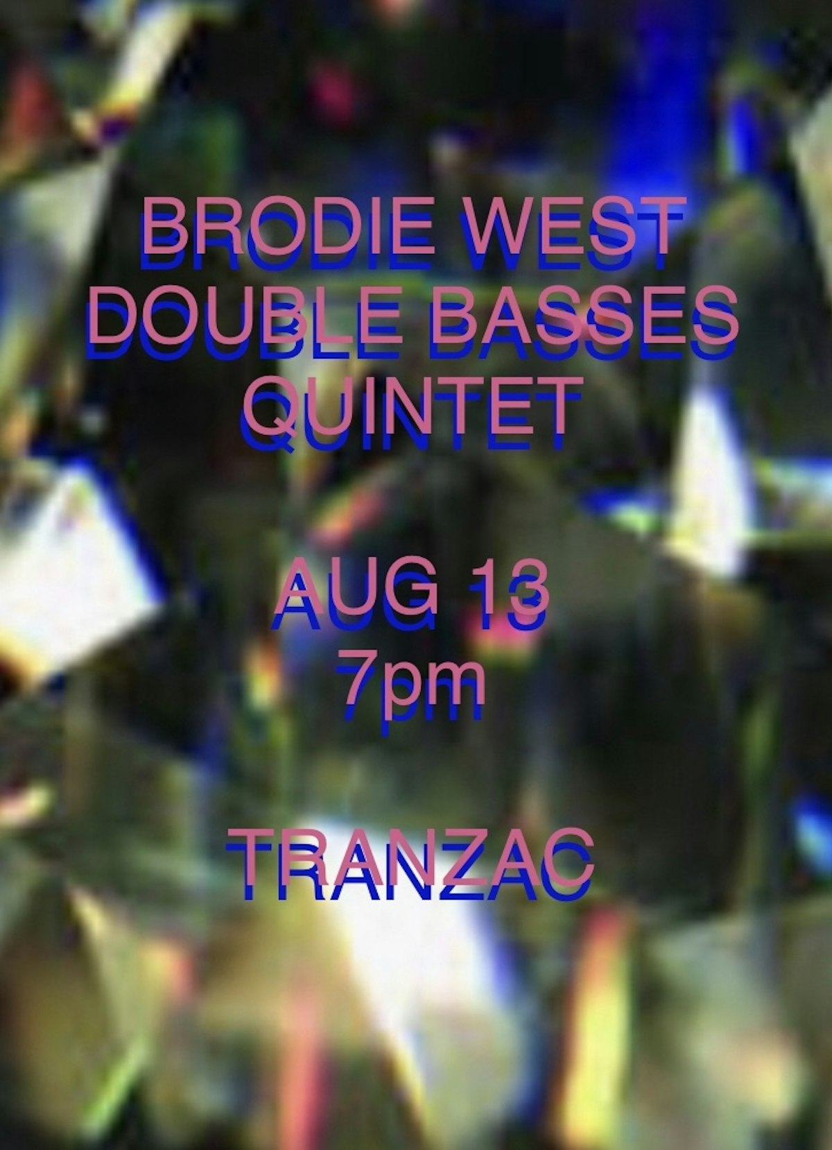 Brodie West's new music composed for a quintet featuring two bass players. Rob Clutton and Josh Cole bass, Nick Fraser drums, West alto saxophone/clarinet and special guest Chris Pruden synth/piano.