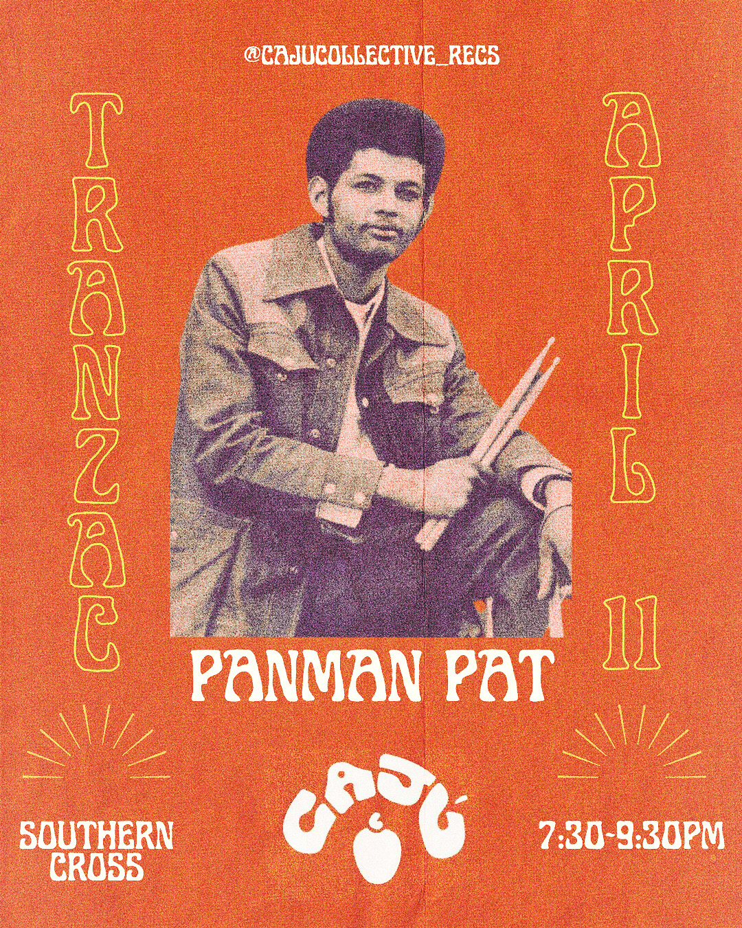 Panman Pat will be joined by Caju Collective’s house band (Artu, Felipe, and Dan) at Tranzac’s Southern Cross. Set will be recorded live to cassette and cut to 7"" vinyl on the Caju Collective label. "