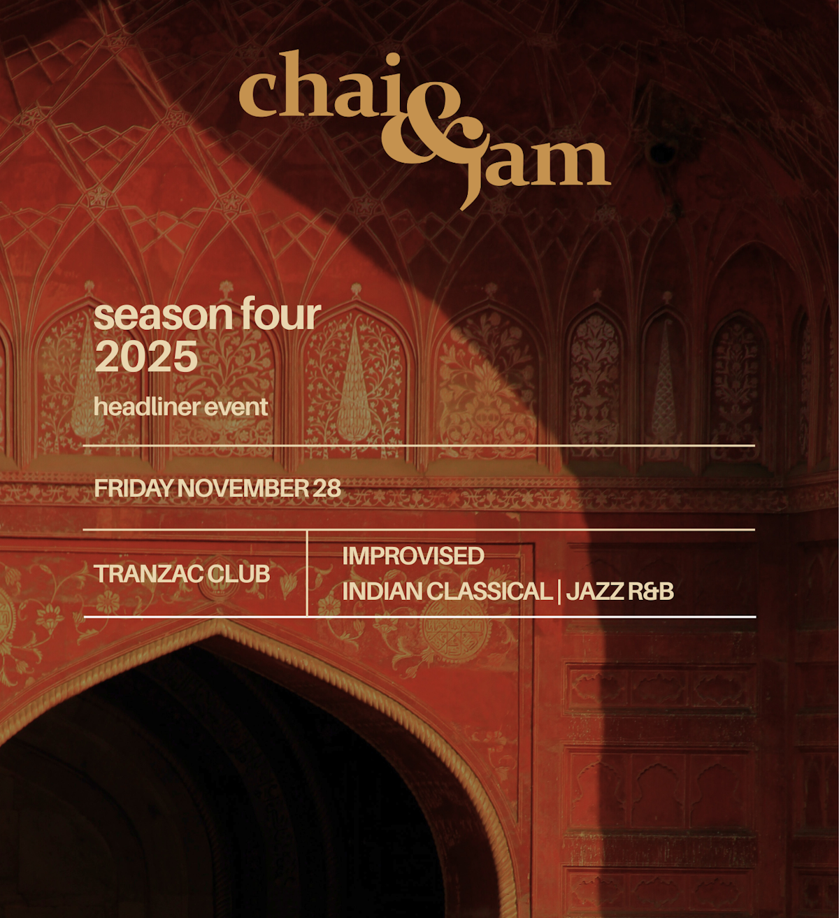 "Chai & Jam is an innovative concert series that brings together Indian Classical, Jazz, and R&B musicians in a spontaneous improvised format where artists meet for the first time on stage. This experience encourages fearless improvisation, where performers rely on their training, intuition, and openness to create something entirely new.