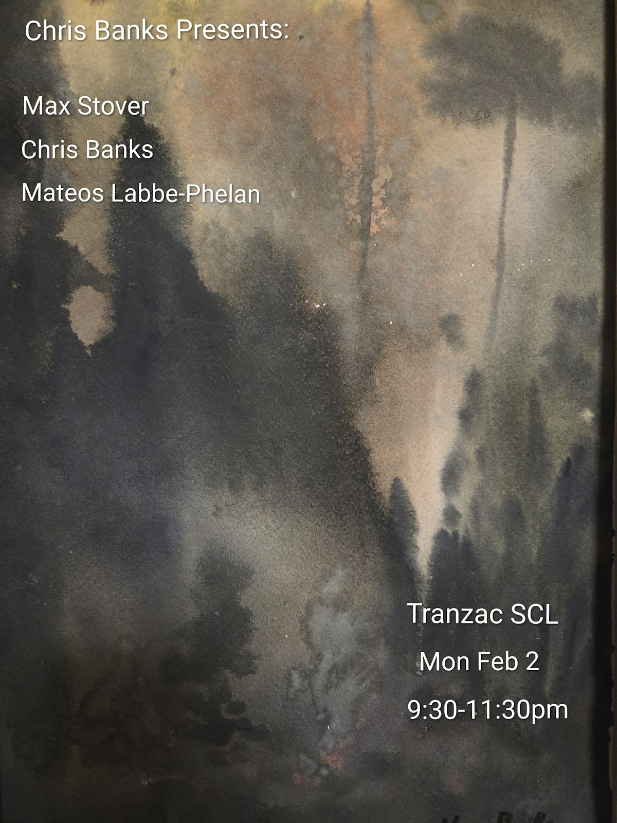 Max Stover (sax), Chris Banks (bass) and Mateos Labbe-Phelan (drums) explore the juxtaposition of form and formlessness through the mixing of jazz standards and free play. Swing is nobody's business.