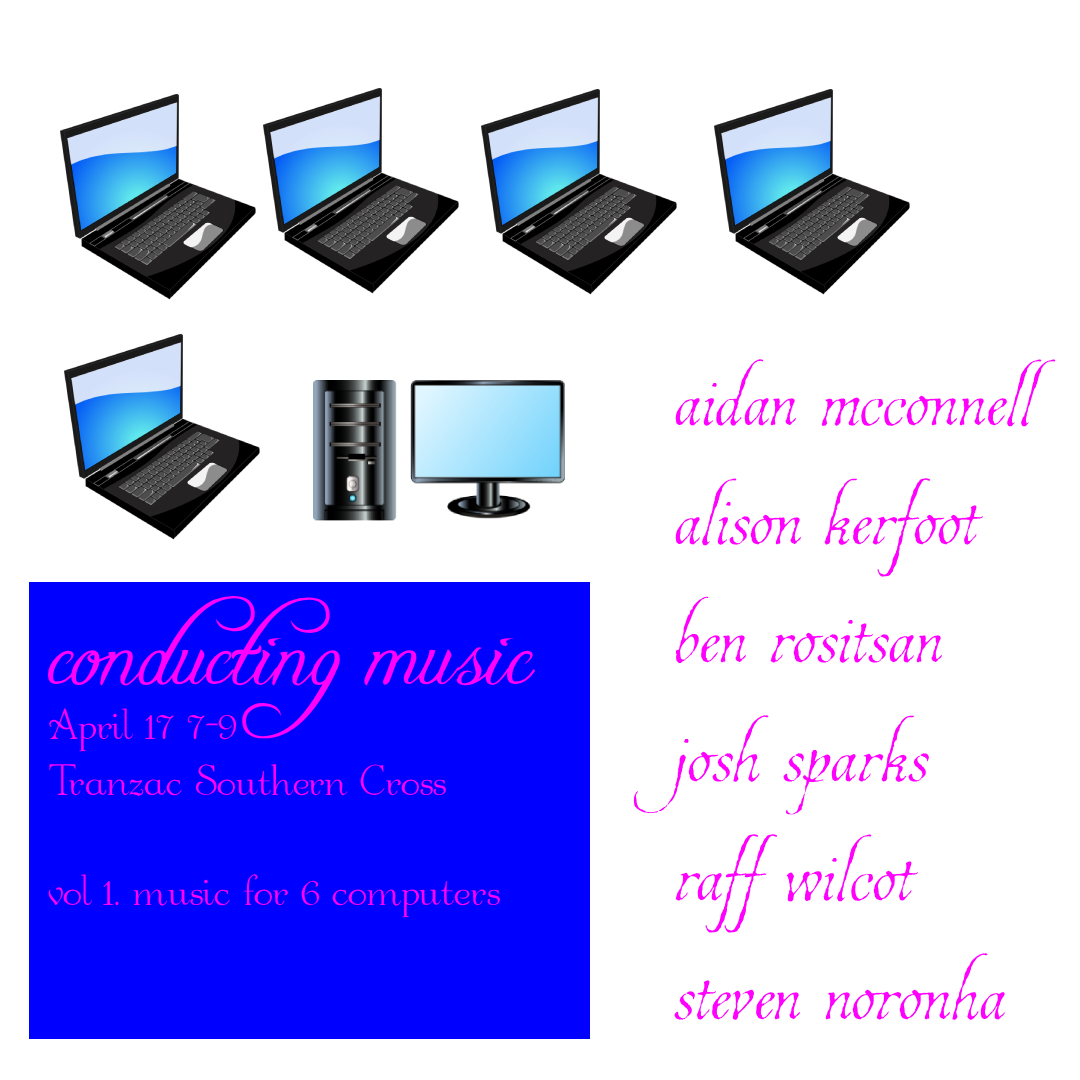 Conducting music: a night of six computers playing music as dictated by the audience (DAWless)
