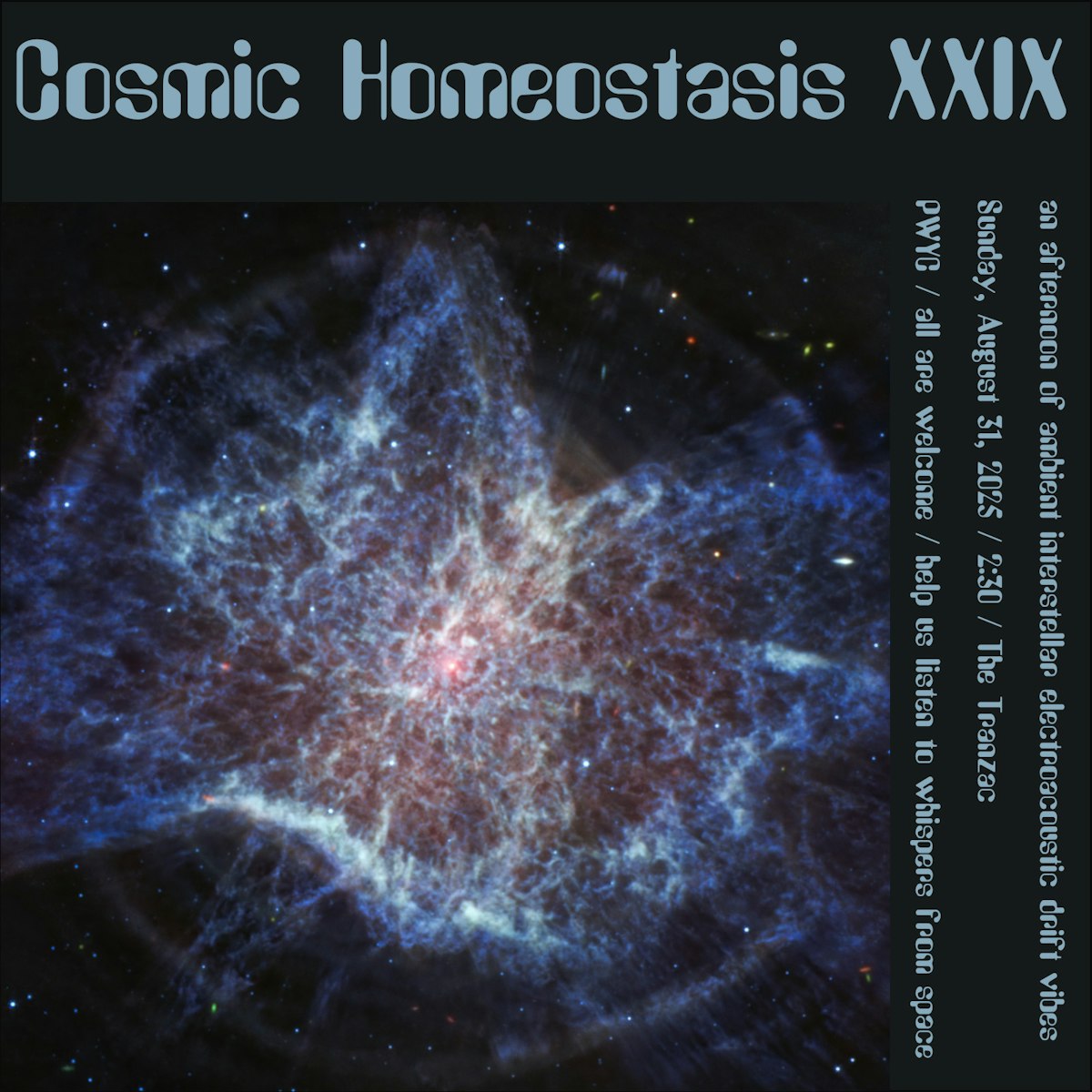 "an afternoon of ambient interstellar electroacoustic drift vibes Sunday, August 31, 2025 / 2:30 / The Tranzac PWYC / all are welcome / help us listen to whispers from space