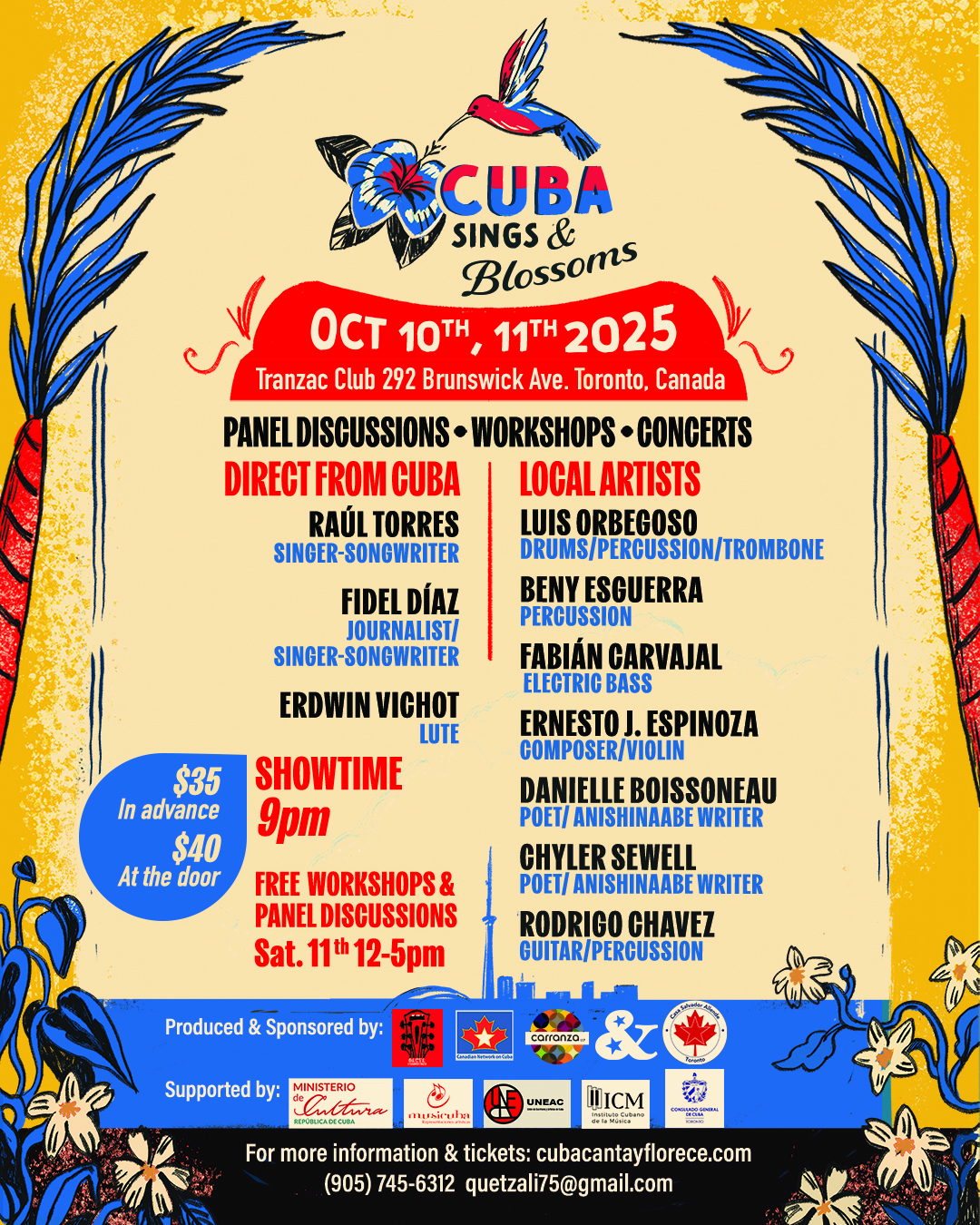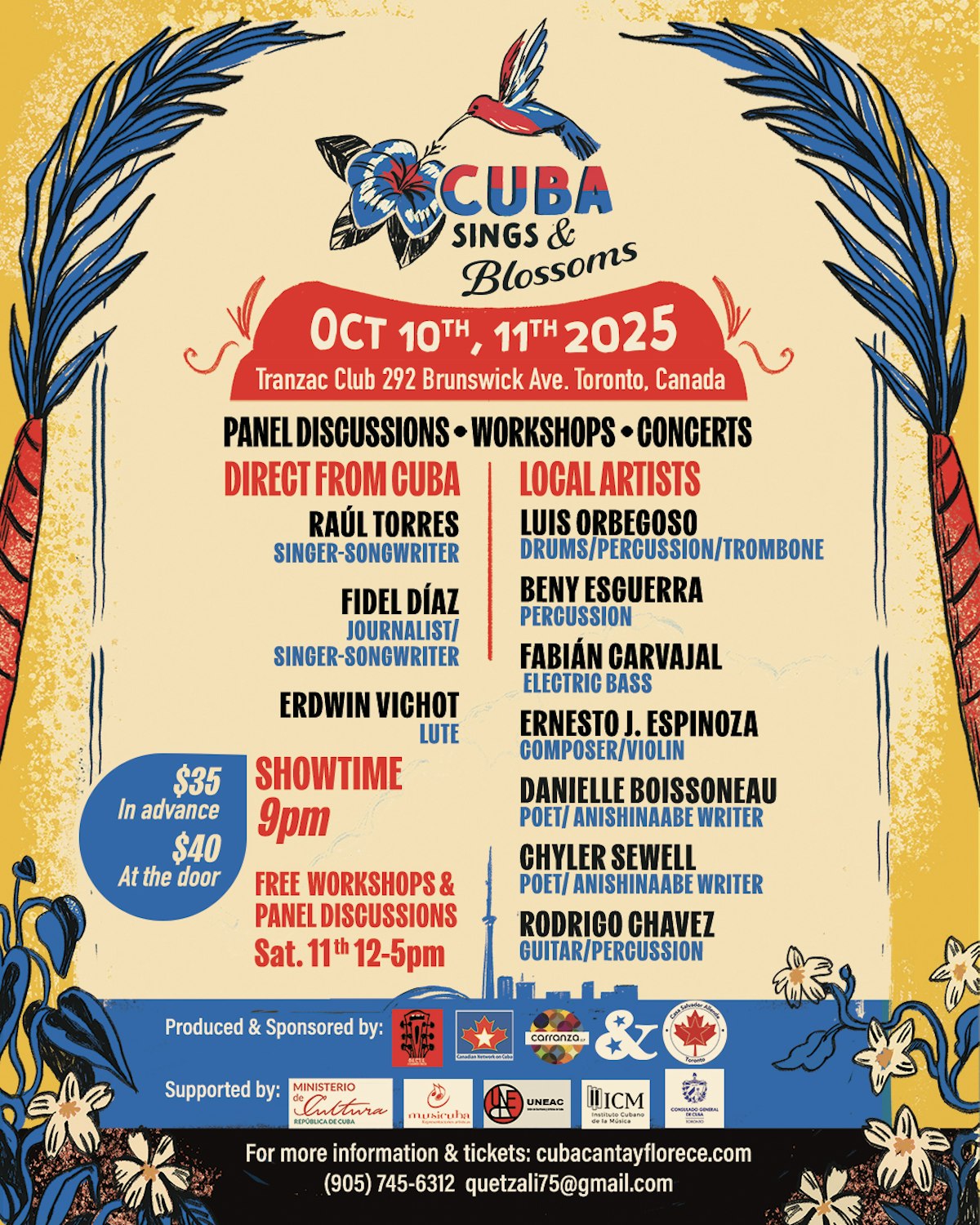 Cuba Signs and Blossom Festival - An Immersive Cultural Exchange between Cuba, First Nations, and Canada.- We warmly invite you to an unforgettable celebration of music, culture, and creativity at the upcoming festival, featuring stellar Cuban musicians, visionary Indigenous artists, and dynamic Latin Canadian talent. This event promises to be a soul-stirring journey—where artistry meets dialogue, and every note carries the power to inspire, connect, and transform.