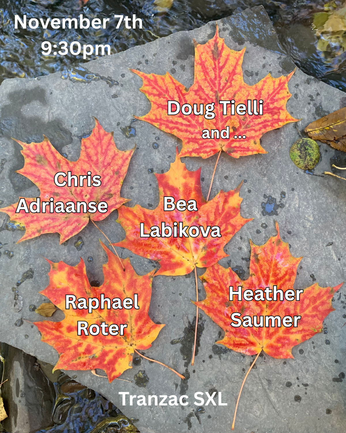 Song, composition and sounds from many angles. Doug’s music is comfortably and uncomfortably amorphous, settled and unsettling, hypnotic and surprising , from glacial slaw to grooving- in and out of genres from folk, quasi-ambient, pop, jazz, and through-composition tethered together and pulled apart by the threads and ruptures of improvisation. Each night of this residency will feature dynamic improvising musicians whose unique voices will allow new musical material to grow, find itself, lose itself, take on new meanings and shift kaleidoscopically.