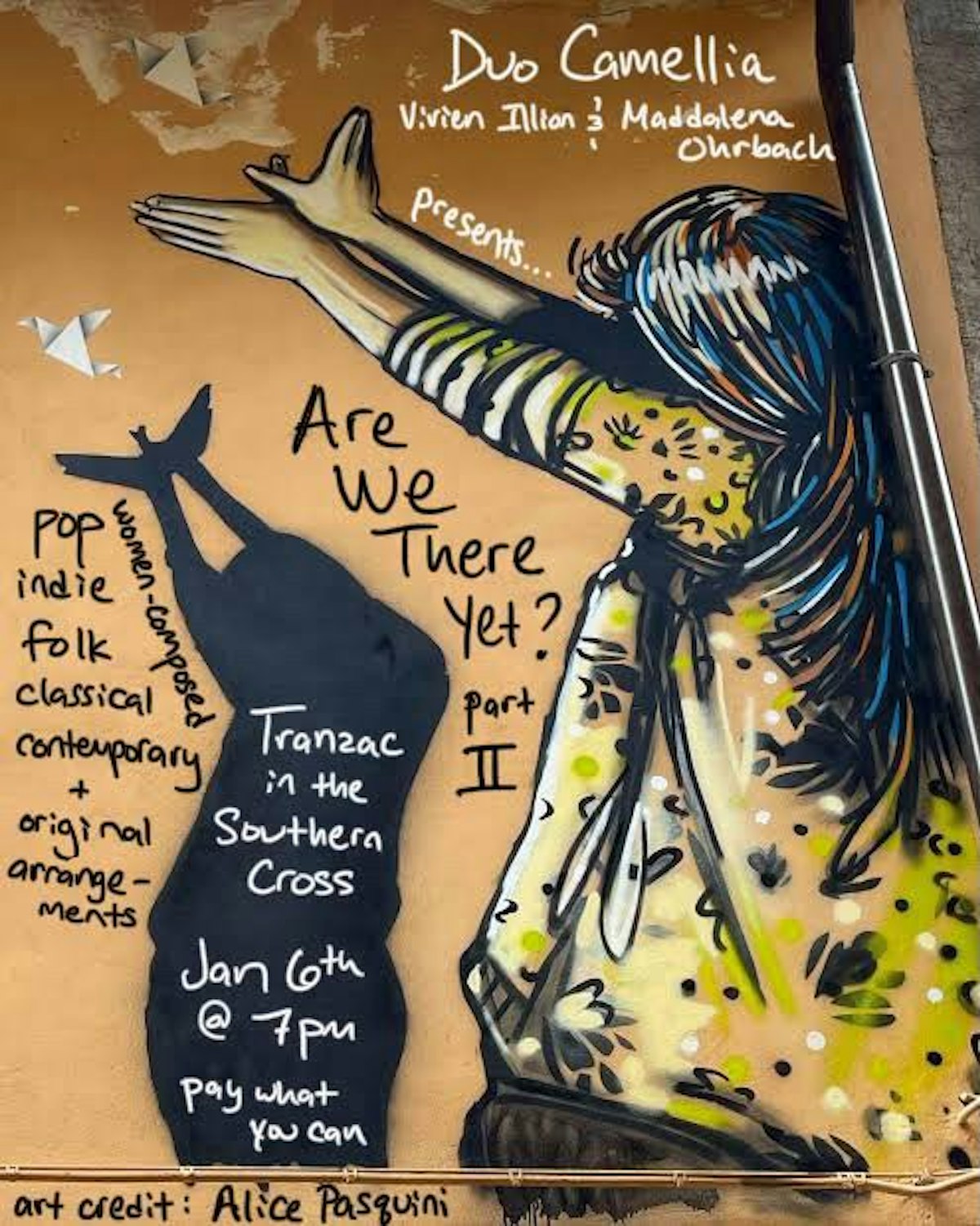 Are We There Yet? is a concert of a cappella vocal chamber music by women composers, including classical, contemporary classical, folk, indie, and pop. Presented by Duo Camellia and friends, this eclectic and engaging program explores journeys both within and through the world at large.