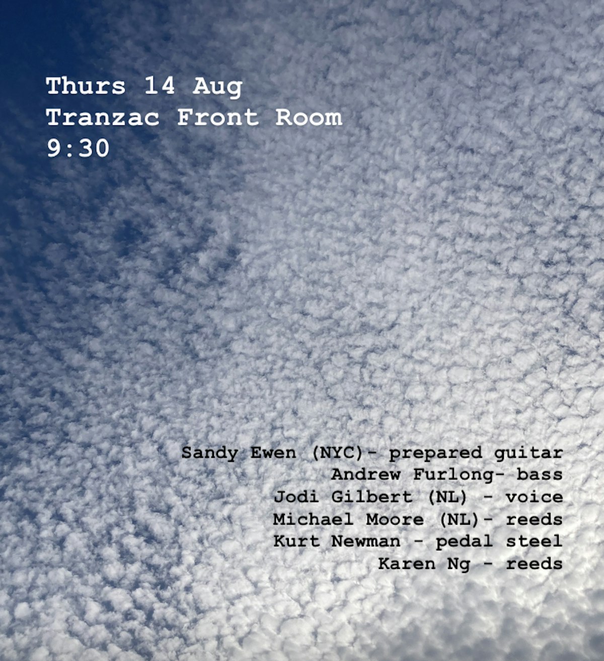 Sandy Ewen - prepared guitar Andrew Furlong - bass Jodi Gilbert - voice Michael Moore - reeds Kurt Newman - pedal steel Karen Ng - reeds"