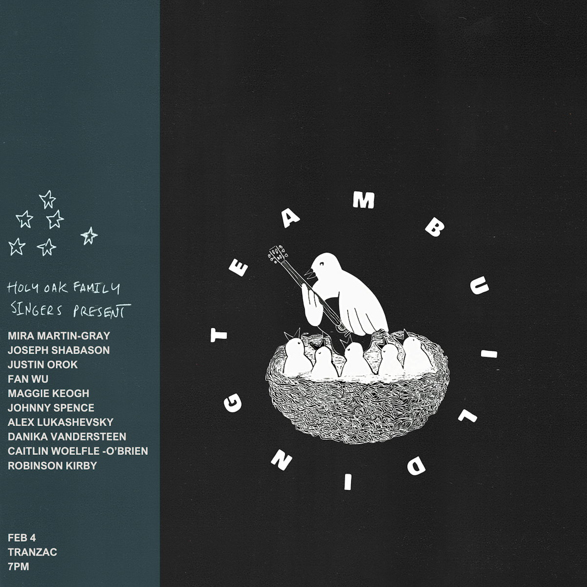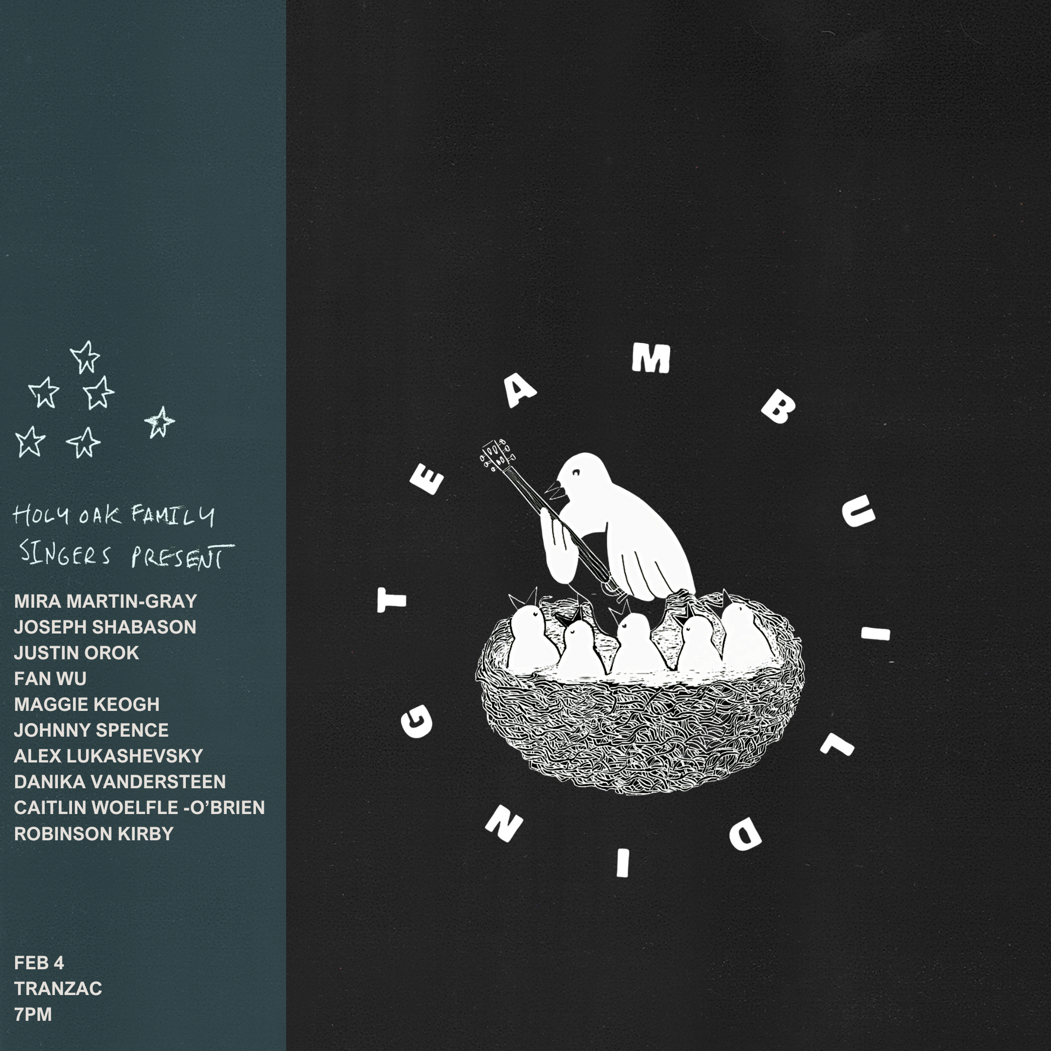 Holy Oak Family Singers Present: Team Building. Singing our own new songs, works-in-progress, and collaborations.