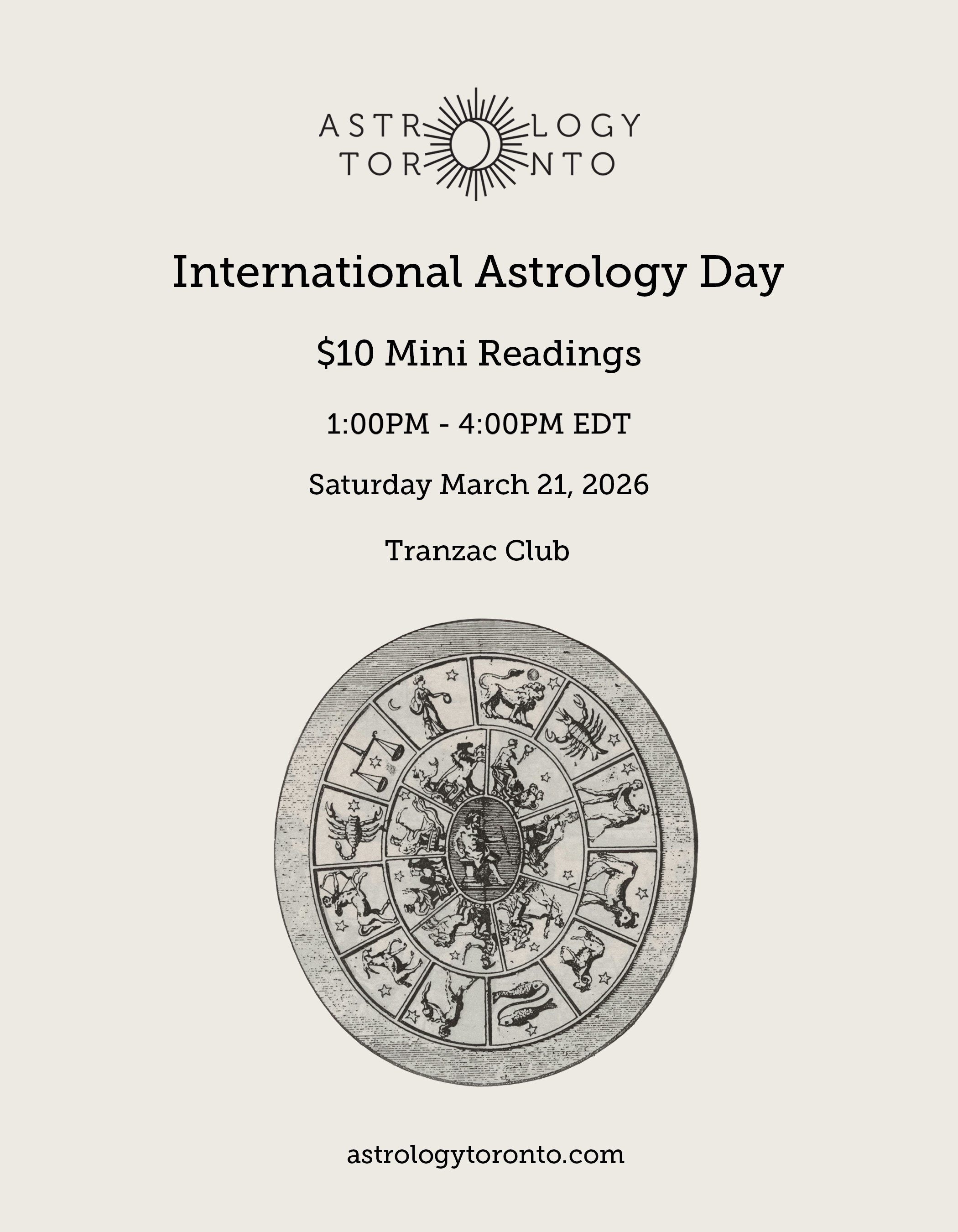 "To commemorate International Astrology Day, members of the Toronto astrological community will offer 10-minute mini-readings to the public for a nominal fee of $10. Explore your destiny and life’s path. This event is open to both members and non-members and will be in person only (no hybrid option).