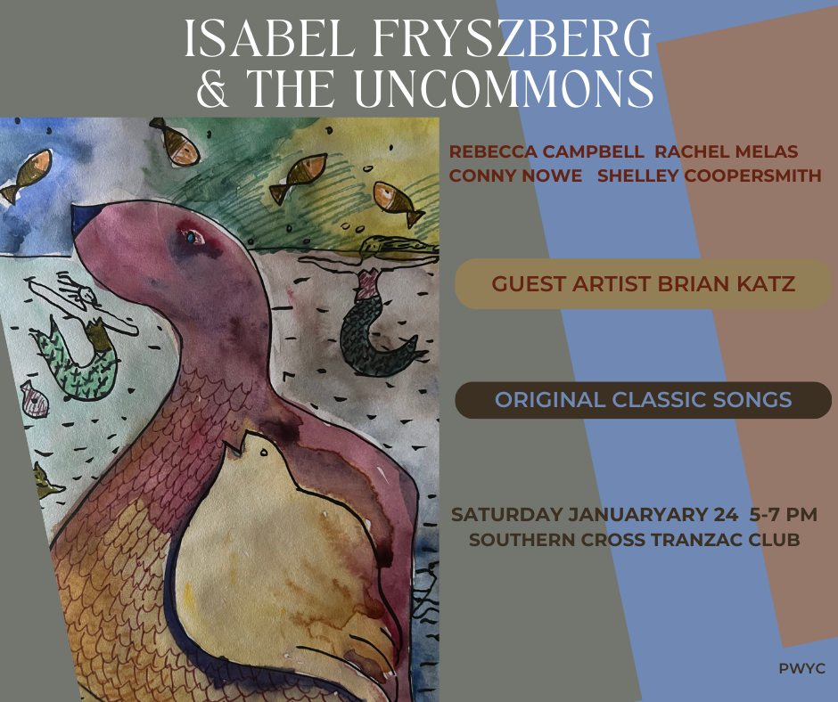 """All faithful to an old tradition while definitely walking the other side of the street."" No Depression Roots Music Journal Isabel Fryszberg & The Uncommons are roots-inspired original songs, rich with harmony and storytelling. Isabel’s melodies weave a tapestry of genre-blending folk, with jazz, blues , country and bluegrass influences. Her songs are quirky and reflective, sometimes upbeat and toe tapping, mostly honest and deeply human. Isabel and her all women stellar Uncommon band features Rebecca Campbell (harmonies and percussion) Rachel Melas (bass) Conny Nowe (drums) and Shelley Coopersmith (fiddle and harmonies) https://www.isabelfryszberg.com/music