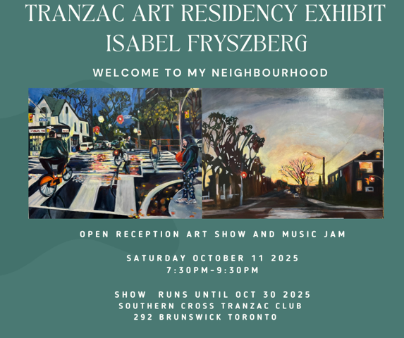 Saturday October 11th 7:30 – 9:30pm Isabel Fryszberg Art Opening and Jam in the Southern Cross