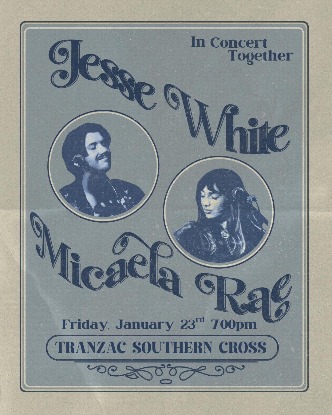 Join guitarist Jesse White & singer-songwriter Micaela Rae for a night of original music as they perform their first double bill together. They will be joined by Sara May (vocals & violin), Ben Dwyer (bass), and Julian Psihogios (drums)