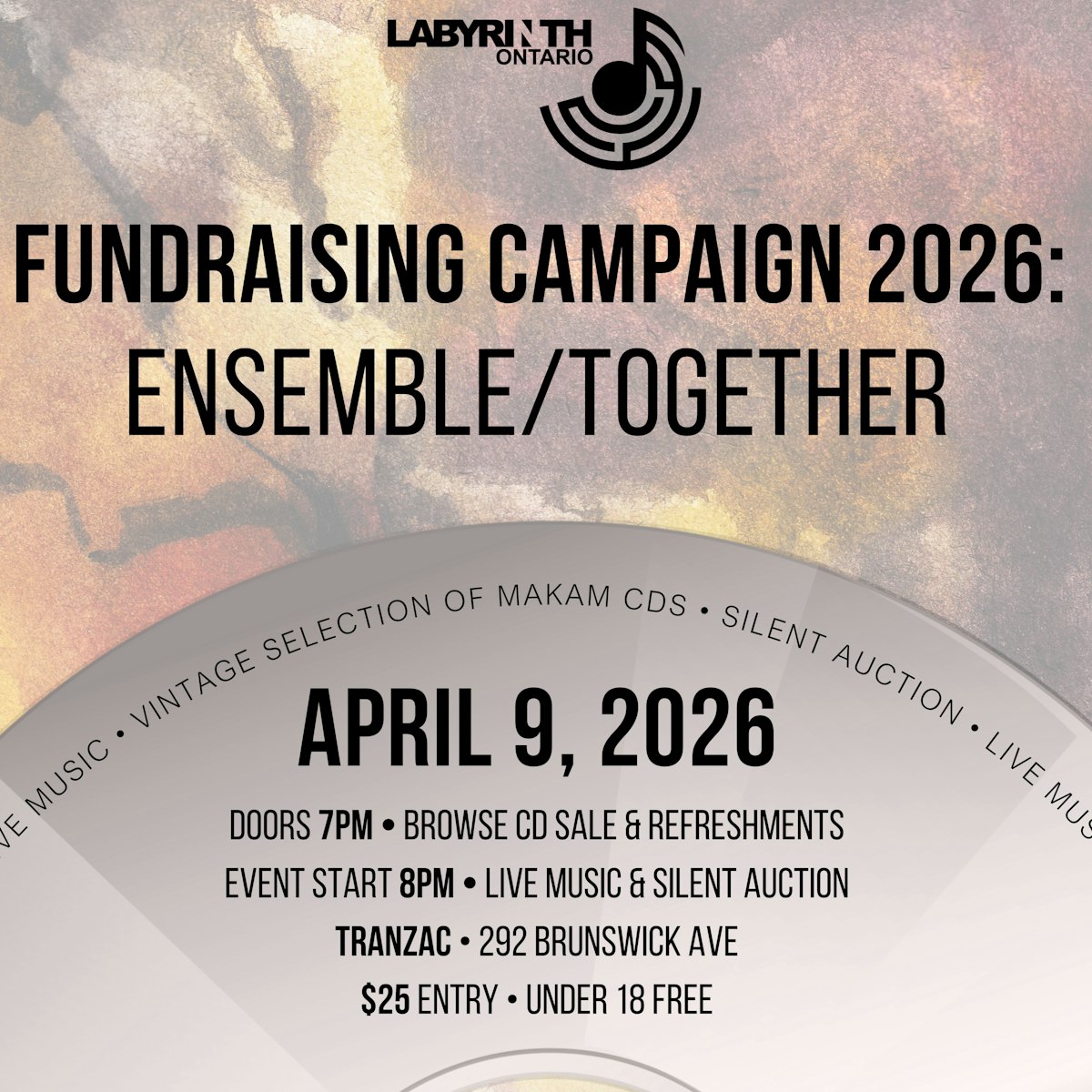"Labyrinth Ontario's annual fundraiser will feature performances by Iranian Folios of Dastgāh + Turkish music luminaries, a massive vintage CD sale of makam/makam-adjacent genres, and silent auction of unique items for the curious appreciator of art.