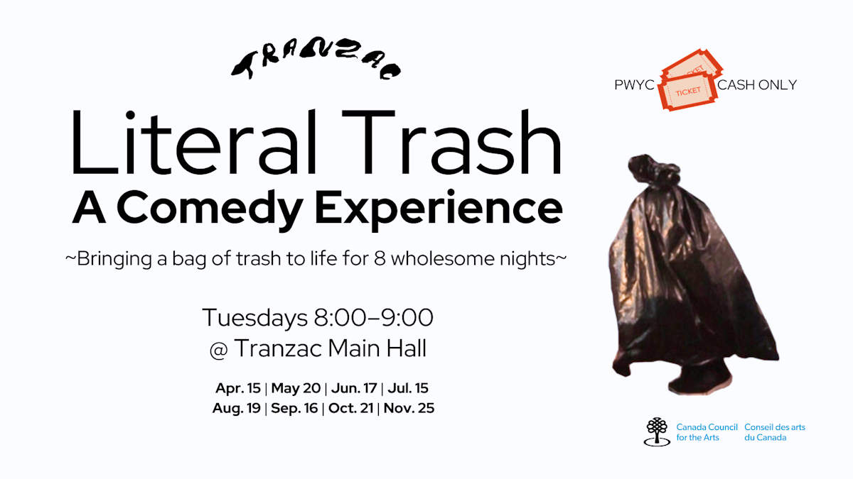 Literal Trash: A Comedy Experience is an exploration of what happens when a bag of trash comes to life. Reflecting on a new-found (loveable) interior space, the rare occasion of being around people, and the domino effect of heaping existential feelings, this experimental show inspired by loveable Pixar characters includes gentle audience interactions for a silly, wholesome night. Come for themes of self-doubt and belonging expressed through physical comedy. Doors @ 7:30, show 8:00–9:00.