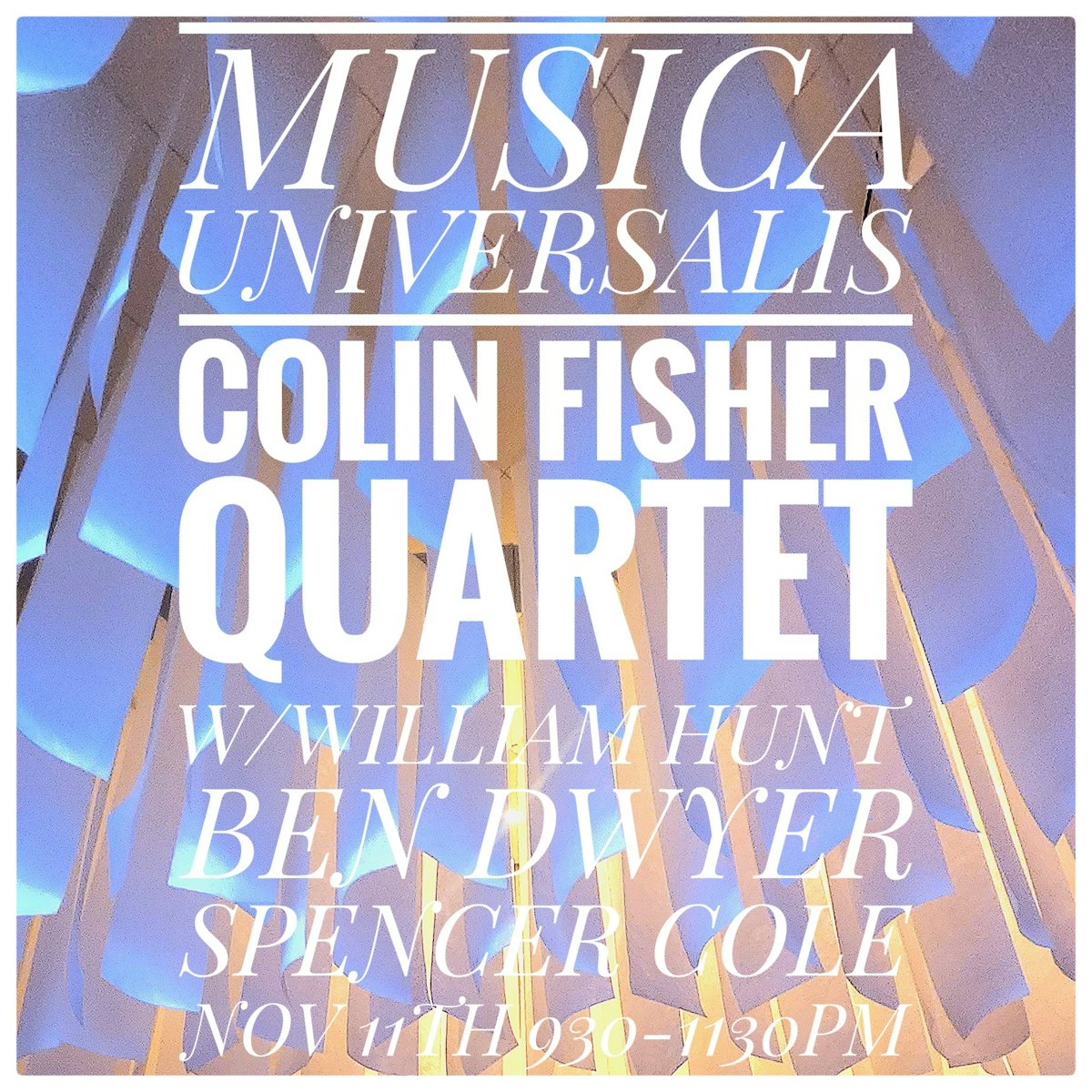 "Colin Fisher quartet. 4 of Toronto's most talented and eclectic musicians realizing the original jazz compositions of long time Toronto resident composer and multi-instrumentalist Colin Fisher . Colin Fisher - tenor sax William hunt - keyboard Ben Dwyer - bass Spencer Cole - drums "