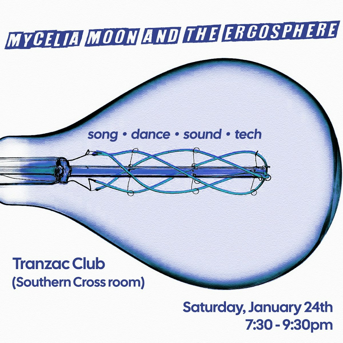 Mycelia Moon and the Ergosphere is a multidisciplinary exploration in songs and sounds, dance, visual arts, and technology. Singer/songwriter and multi-instrumentalist Annabelle Chvostek, musician and expressive technician Gerald Grison and contemporary dancers Lucy Rupert and Jen Hum reflect on utopian imaginings, cosmic scientific phenomena, and being human, from micro to macro through, improvisational elements and metaphor.