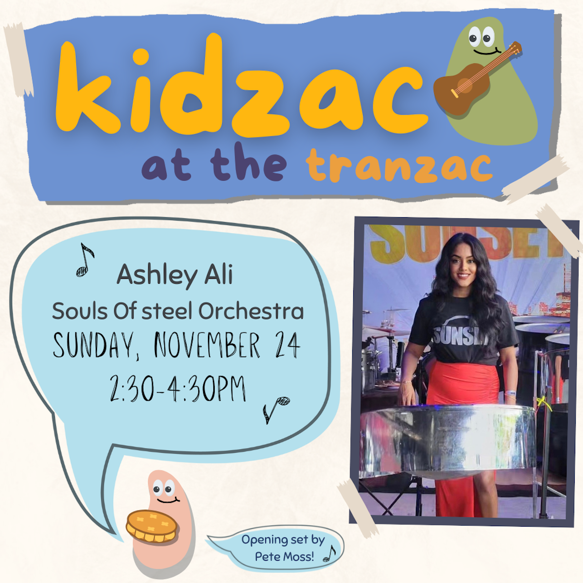 Join us for an afternoon of live music for the whole family! With an opening set by Pete Moss, this month's Kidzac performance features local musician Ashley Ali from the Sounds of Steel Orchestra. Immerse yourself in a wonderful, engaging experience that will foster a love for live music among children!