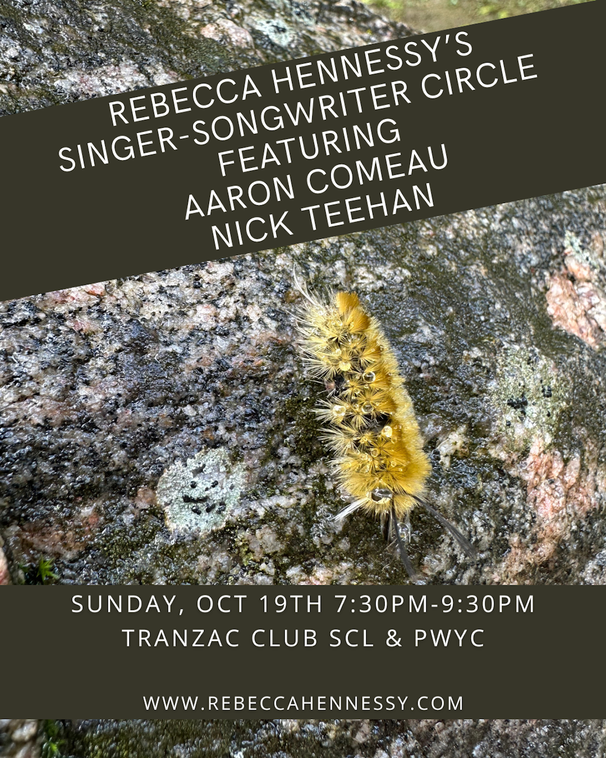 Join us for Rebecca Hennessy’s Singer-Songwriter Circle at the Tranzac Club — an intimate evening of songs, stories, and shared inspiration. This special “in-the-round” performance brings together three distinct and deeply expressive voices in Toronto’s songwriter scene — Rebecca Hennessy, Aaron Comeau, and Nick Teehan — each weaving their own blend of heart, craft, and musical honesty.