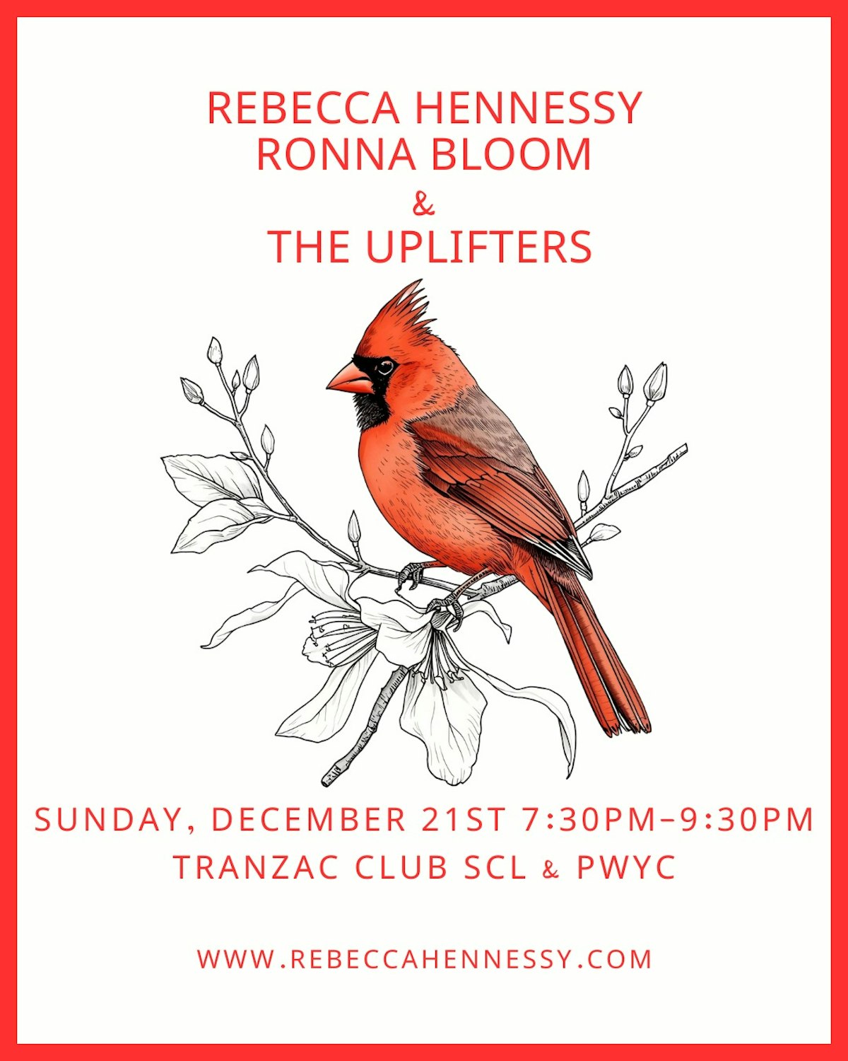 "Join us for an unforgettable night of words, groove, and collective joy at the Tranzac, featuring Ronna Bloom, The Uplifters, and Rebecca Hennessy. Celebrated poet Ronna Bloom is the author of eight books of poetry and a singular voice in Canadian literature. Her work has been broadcast on CBC, recorded by the Canadian National Institute for the Blind, translated into Bangla and Chinese, and featured multiple times in Best Canadian Poetry, with nominations for the Pushcart Prize. Ronna has collaborated widely with filmmakers, choreographers, musicians, and architects, and in 2018 her poem “The City” was painted 35 metres wide on King Street in Toronto. She has also brought poetry into health care, founding the Poet-in-Residence program at Sinai Health. This fall, she launched her powerful new book In a Riptide with double bassist Michael Herring in a joyously packed room — and the ripple continues. The Uplifters always vote YES. YES to slinky groove. YES to making the trip to happiness. YES to togetherness and friendship. Michael Herring (bass), Dave Clark (drums), and Jason Kenemy (piano) play deeply soulful, New Orleans–inspired music made for absolutely everyone. You didn’t know you needed this experience until you sit in the room with them — and then suddenly, it all makes sense. Trumpeter, vocalist, and composer Rebecca Hennessy brings it all together, weaving sound, song, and spirit into an evening of connection, movement, and deep listening. Come warm up your winter with us — this one’s about community, creativity, and saying YES. "