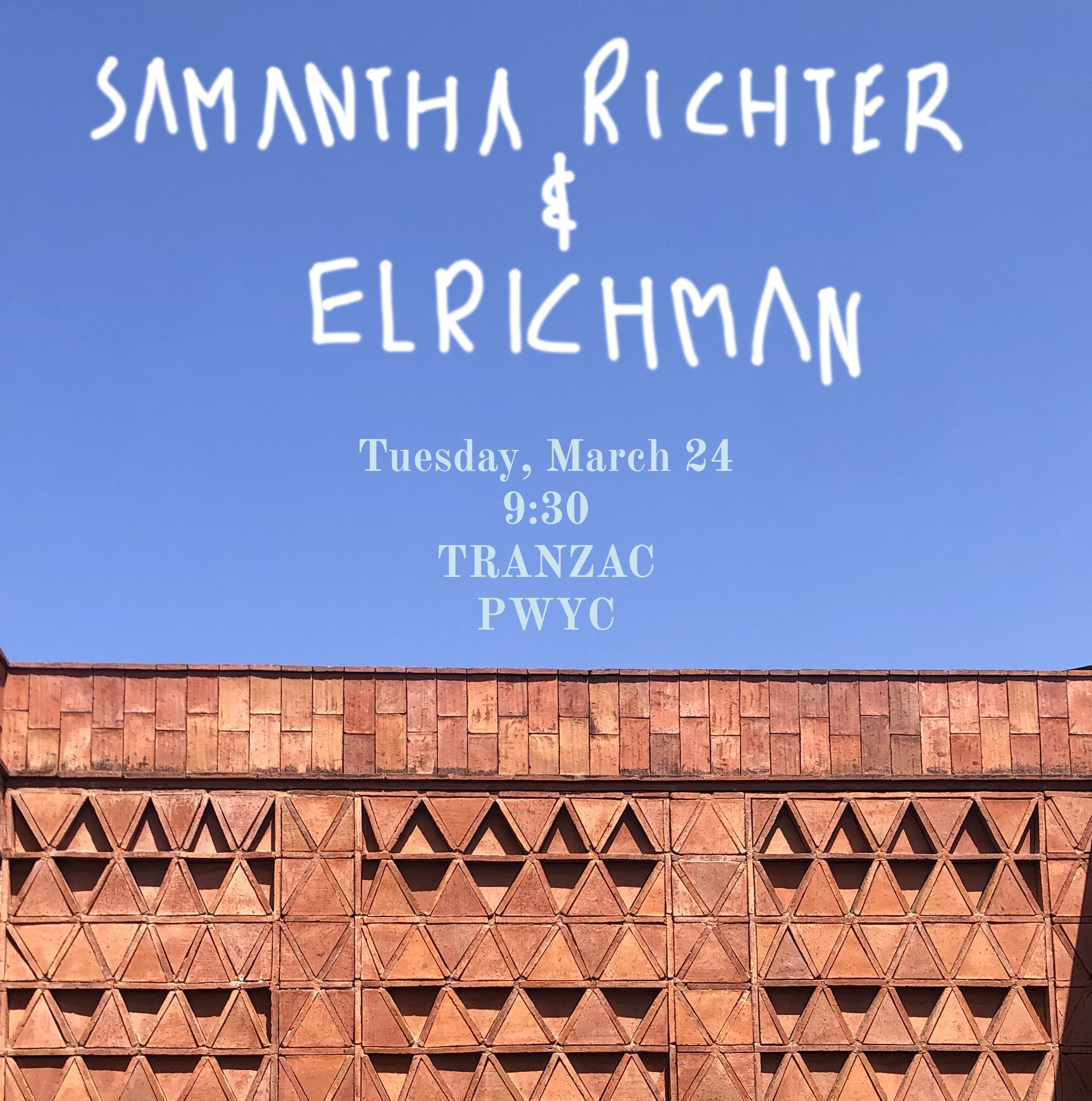 Elrichman and Samantha Richter (unrelated) decided they should play a show together and now they are. They definitely have some sound and friend overlap, so it will be good music, and also a really good hang. Elrichman is playing a solo piano set, and Samantha will be with a band (Pat Lefler, Andrew O’brien, Ben Rositsan). New songs and old in the Southern Cross’s late slot. See you there!