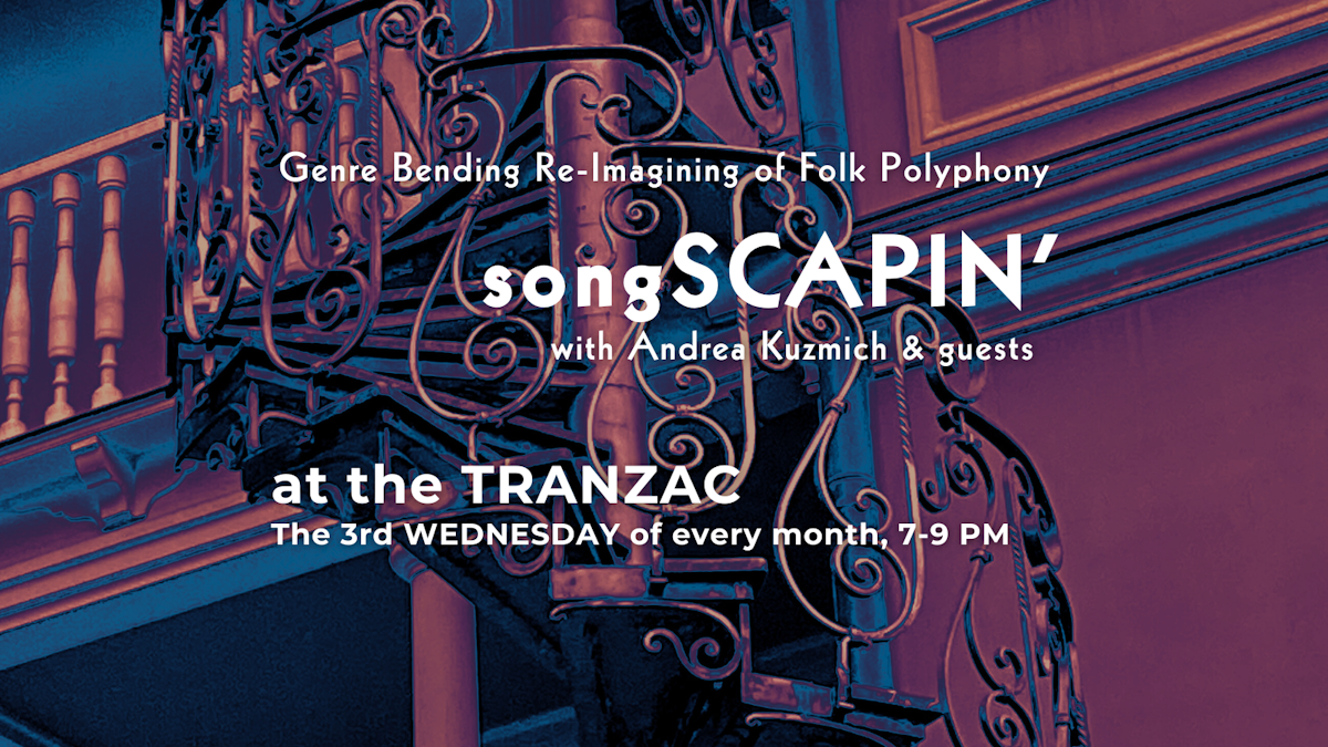 "This iteration of Andrea Kuzmich's songSCAPIN' unleashes visceral, elemental folk energy through the raw, driving skills of some of Toronto's sharpest improvisers. It's the layering of folk polyphony, ritual and lyrical songs from Georgia and Ukraine, deep groove, and spirituality. Jolts of ancient knowledge, reimagined. And always, a chance for the audience to do more than just listen.