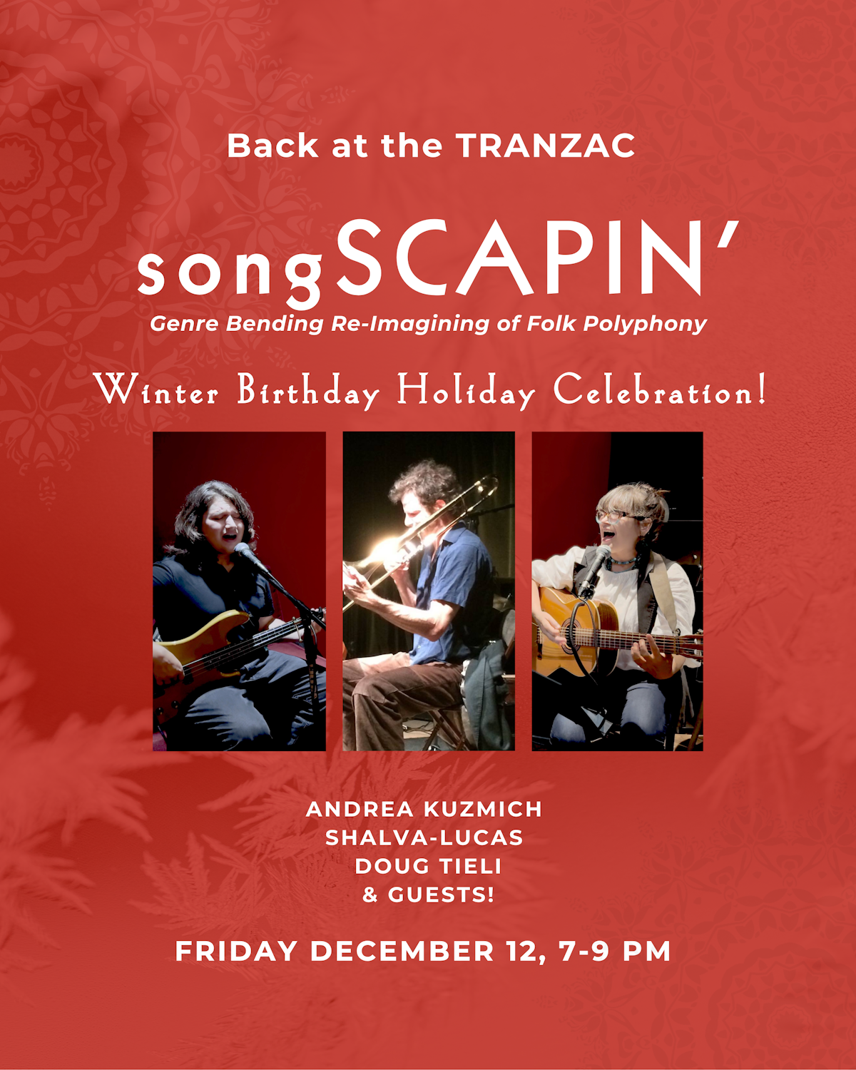 songSCAPIN' returns! It's all about layering folk polyphony with creative grooves. Songs from 🇬🇪 Georgia and 🇺🇦 Ukraine and possibly elsewhere... And in TRUE FOLK HOLIDAY FORM - having you SINGALONG! With a drive to celebrate winter, the holidays and life!