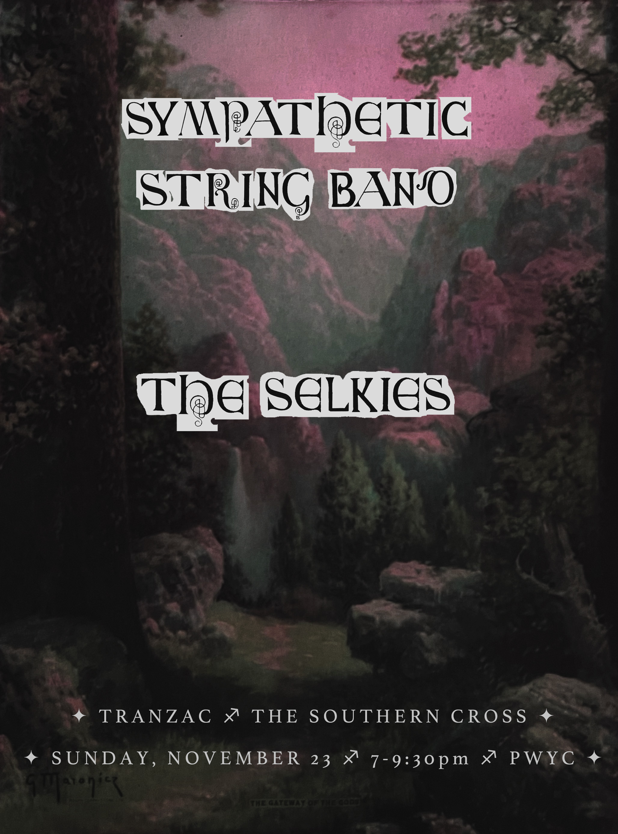 Sympathetic String Band & Friends returns for another evening of spellbinding folk experimentations. This month, we are joined by local troubadours, The Selkies, as they perform traditional and new songs from Ireland, Scotland, the British Isles and beyond! Doors at 7pm with music from 7:30-9:30pm. See you there!