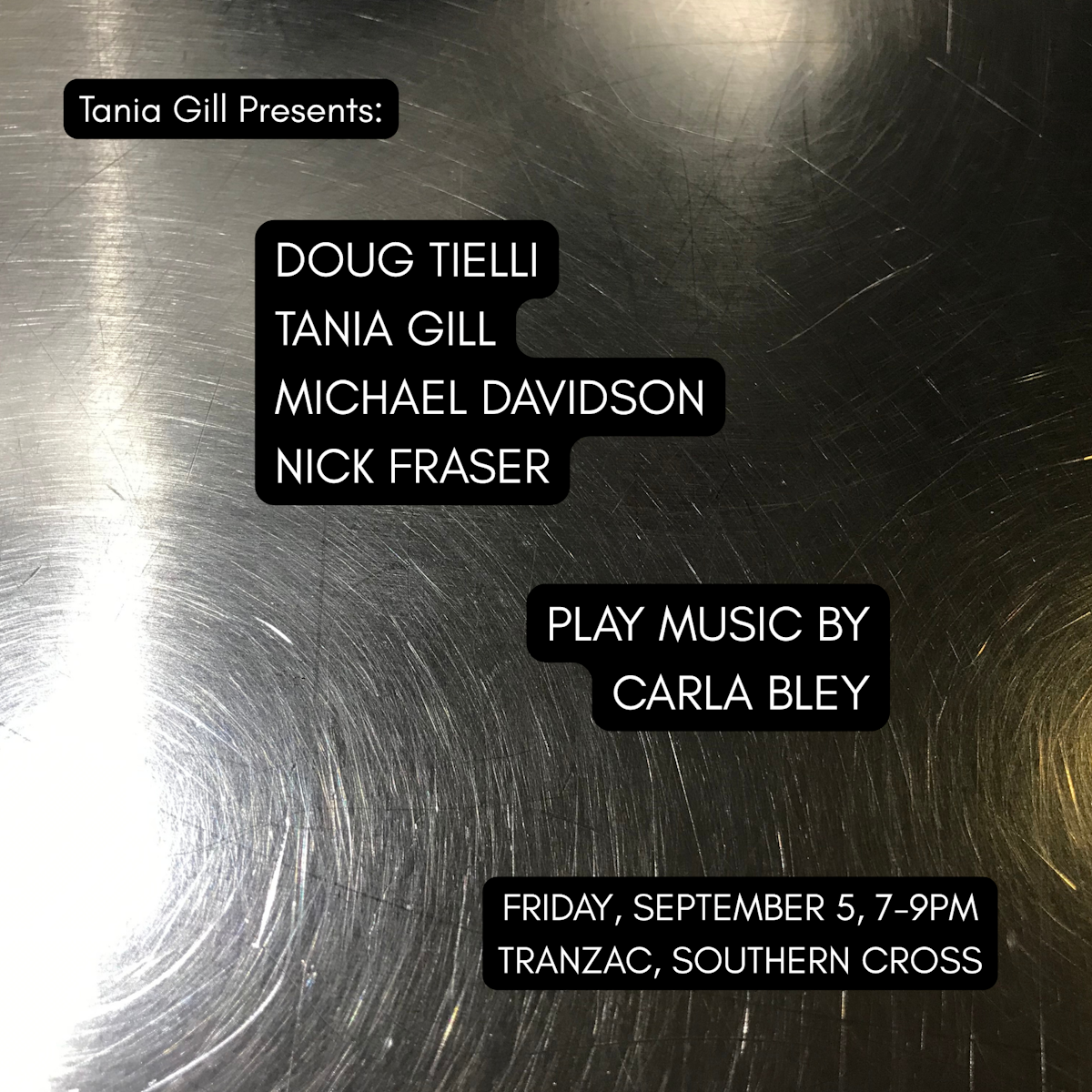 "Tania Gill - piano Doug Tielli - trombone and singing Michael Davidson - vibraphone Nick Fraser - drums