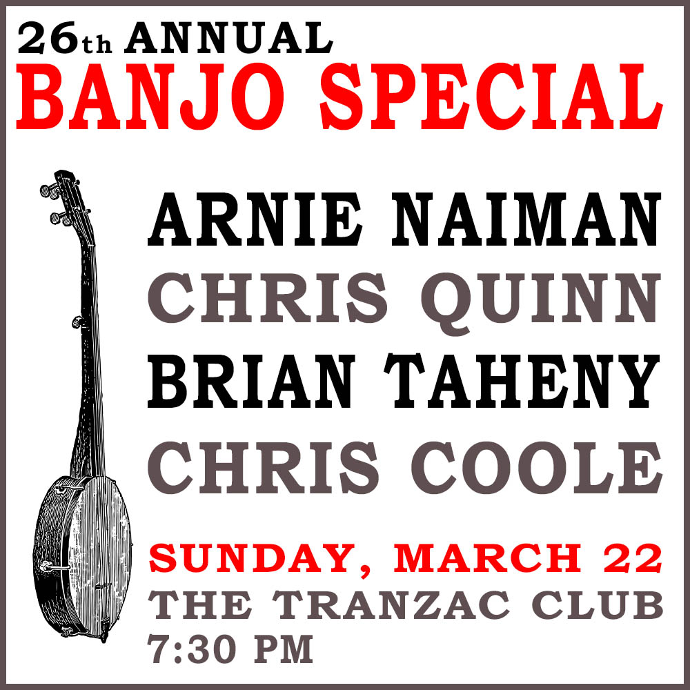 A fun night and a Toronto tradition! In its twenty-sixth year, The Banjo Special brings together 4 of Canada’s top players to celebrate this wonderful instrument. Come and join Chris Coole, Arnie Naiman, Brian Taheny, Chris Quinn, and a myriad of guests as they present an evening of songs and tunes - with banjos at the heart of it all. There will be breakdowns and marches, picks and bare fingers, songs new and old, tubaphones and flatheads, Vegas and Gibsons. And it will all be handled with flair, fun, and big style. This is a unique chance to hear the diverse voice of both the five-string and tenor banjo, and how the instrument has woven its way into Bluegrass, Old-Time, Americana, and Traditional Irish music.