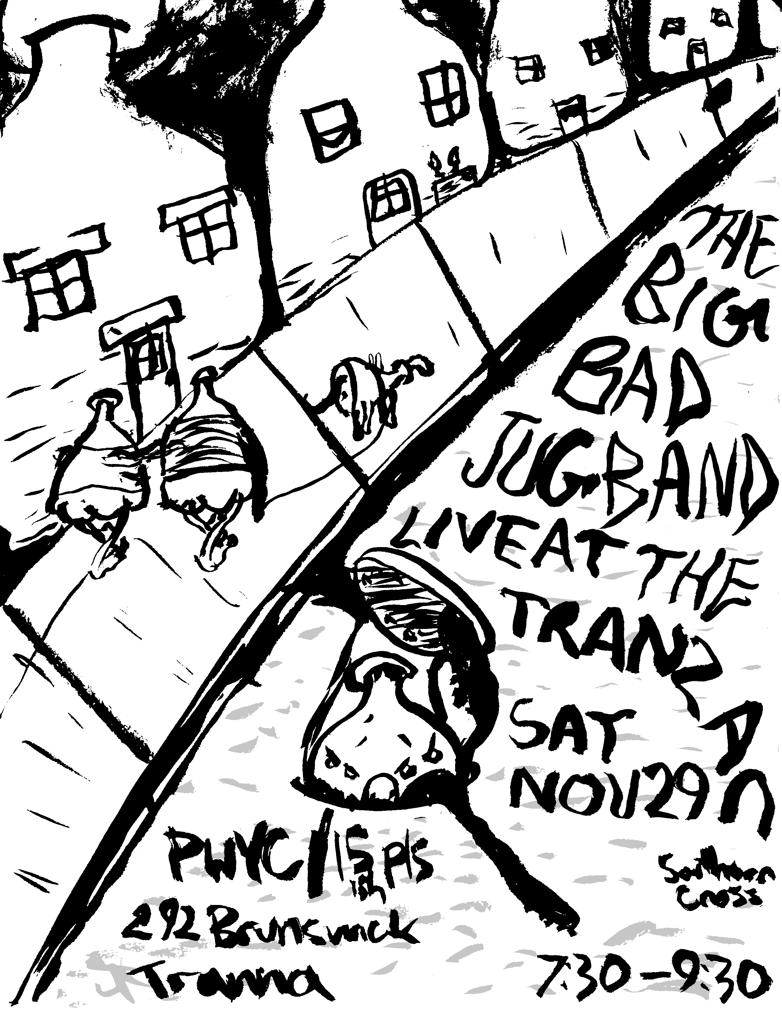 "https://www.facebook.com/events/1910294382882882 show time: 7:30-9:30 two sets PWYC/ $15 suggested BIG BAD BANDCAMP: https://bigbadjugband.bandcamp.com The Big Bad Jug Band is a post-jug psych quartet from Orillia and Hamilton, Ontario. We write comedy songs performed in styles of yesteryear. Our gonzo take on jug music mixes rock and roll, doo-wop and bluegrass progressions with a raucous panache. The Big Bad Jug Band brings the sounds of old into the ears and minds of now."