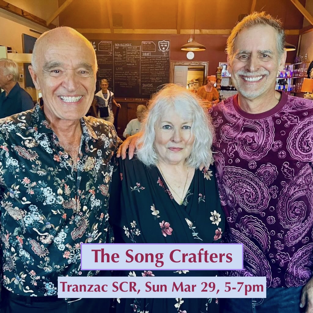 The Song Crafters—Chris Birkett, Lisa Hartt, and Brian Morgan—return to the Tranzac’s Southern Cross Room. The notion of “craft” implies depth of experience and close attention to every aspect of a song—its music, lyrics, performance, and in Chris’s case, its production and engineering as well. As Lisa has observed, ‘what I’ve learned after all these years: music doesn’t age. It deepens. And so do the artists who make it.’ Come see for yourself. As before, we will be playing our originals as well as several favourite covers. We might even entice an audience member or two to join us. Sunday March 29th, 5-7 pm, pwyc.