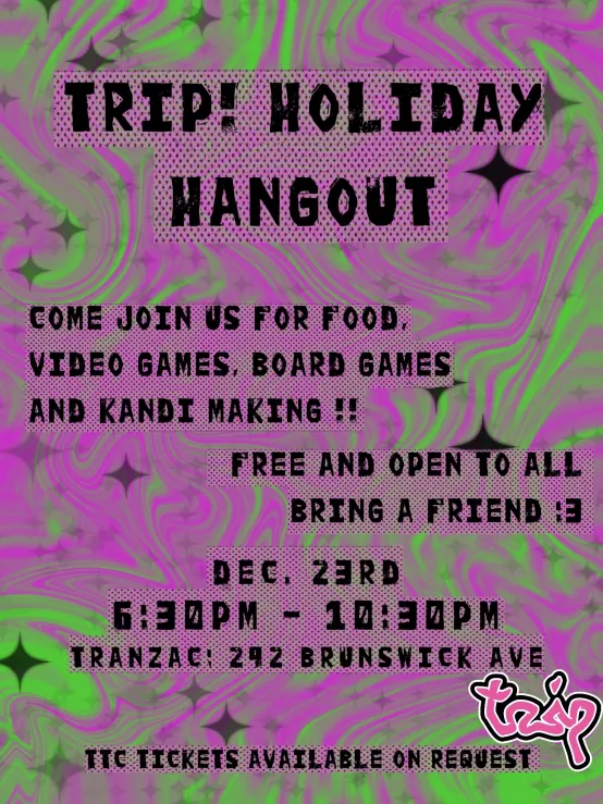 celebrate the end of the year with Trip! Project staff and volunteers! We will have food, games, music, food, cozy vibes, and kandi making :)